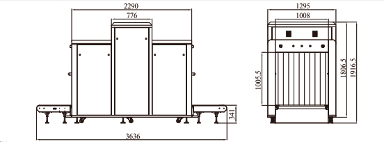 9、外形尺寸(不含接物架) 3636mm(長(zhǎng))*1295mm(寬)* 1916.5mm(高)