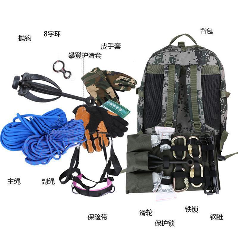 攀登作業包具有使用簡單,配套齊全,便于攜帶等特點,是公安、武警攀登訓練的必備器材。主要器材:
